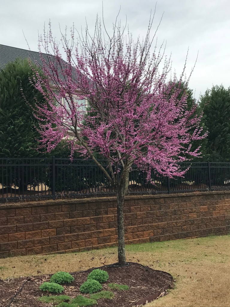 The photo you see says it all. There’s so much joy to be derived from doing your own landscaping. This Redbud was a 3″ diameter stick when it was planted 5 years ago. Now my wife and I get to savor its beauty right from our kitchen window all day long.
